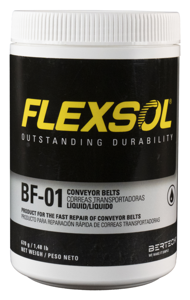 FLEXSOL BF-01: elastômero de uretano líquido com alta aderência à borracha para reparação de correias transportadoras com núcleo de tecido, fabricação de peças moldadas e outras aplicações de borracha.